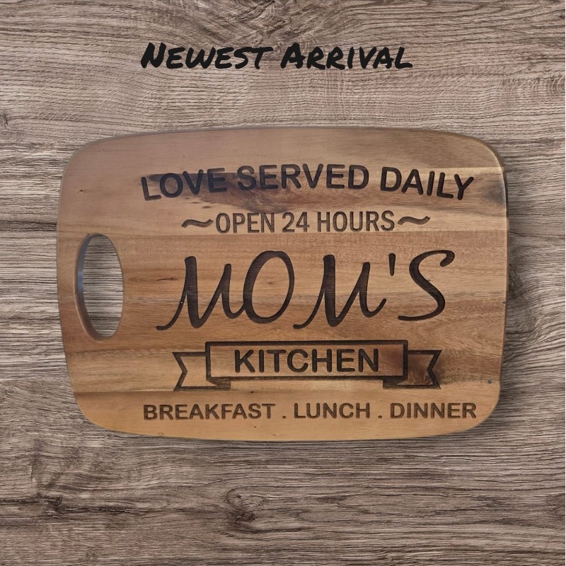 Two-Sided Cutting Board. Engraved on one side and ready for cutting on the other