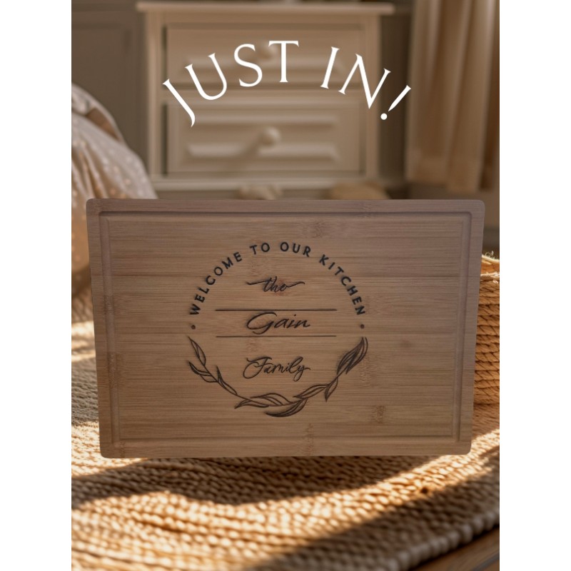 This Engraved Cutting Board has your family name Engraved on it. It is made of high quality Bamboo that has natural antibacterial properties.